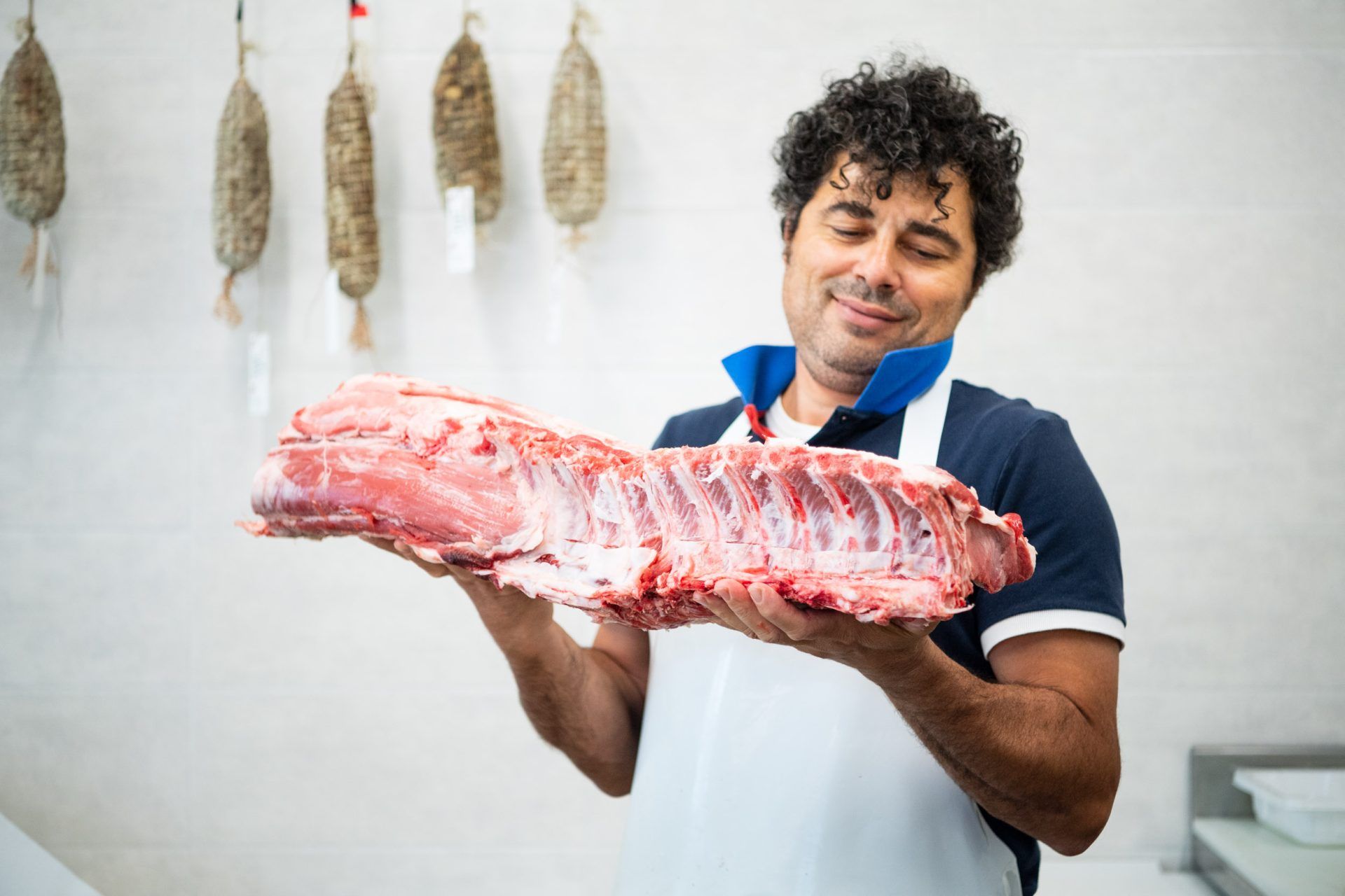 I suini sono allevati in proprio, mentre il manzo e il pollo provengono da piccoli allevamenti di fiducia, per cui controlliamo le fasi di allevamento, la nutrizione e la macellazione.